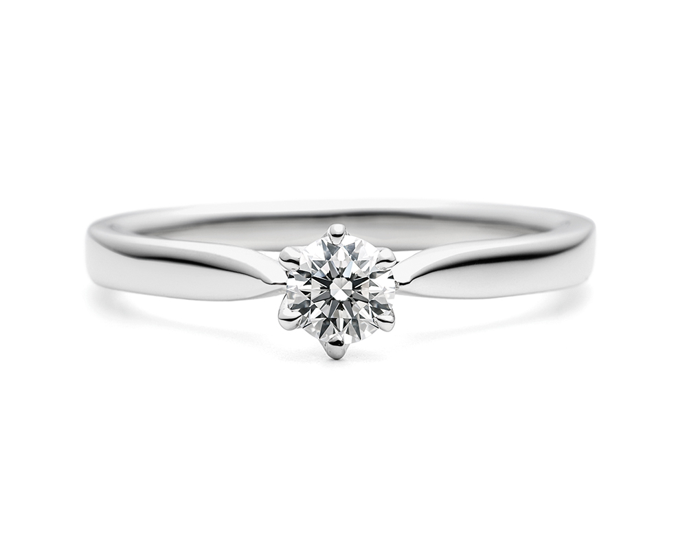 また、様々なテイストのストレートラインのマリッジリングと綺麗に重なる事を重視し、センターダイヤモンドのセッティングの高さや厚みにこだわっている為、マリッジリングを選ぶ時の自由性も高いです。