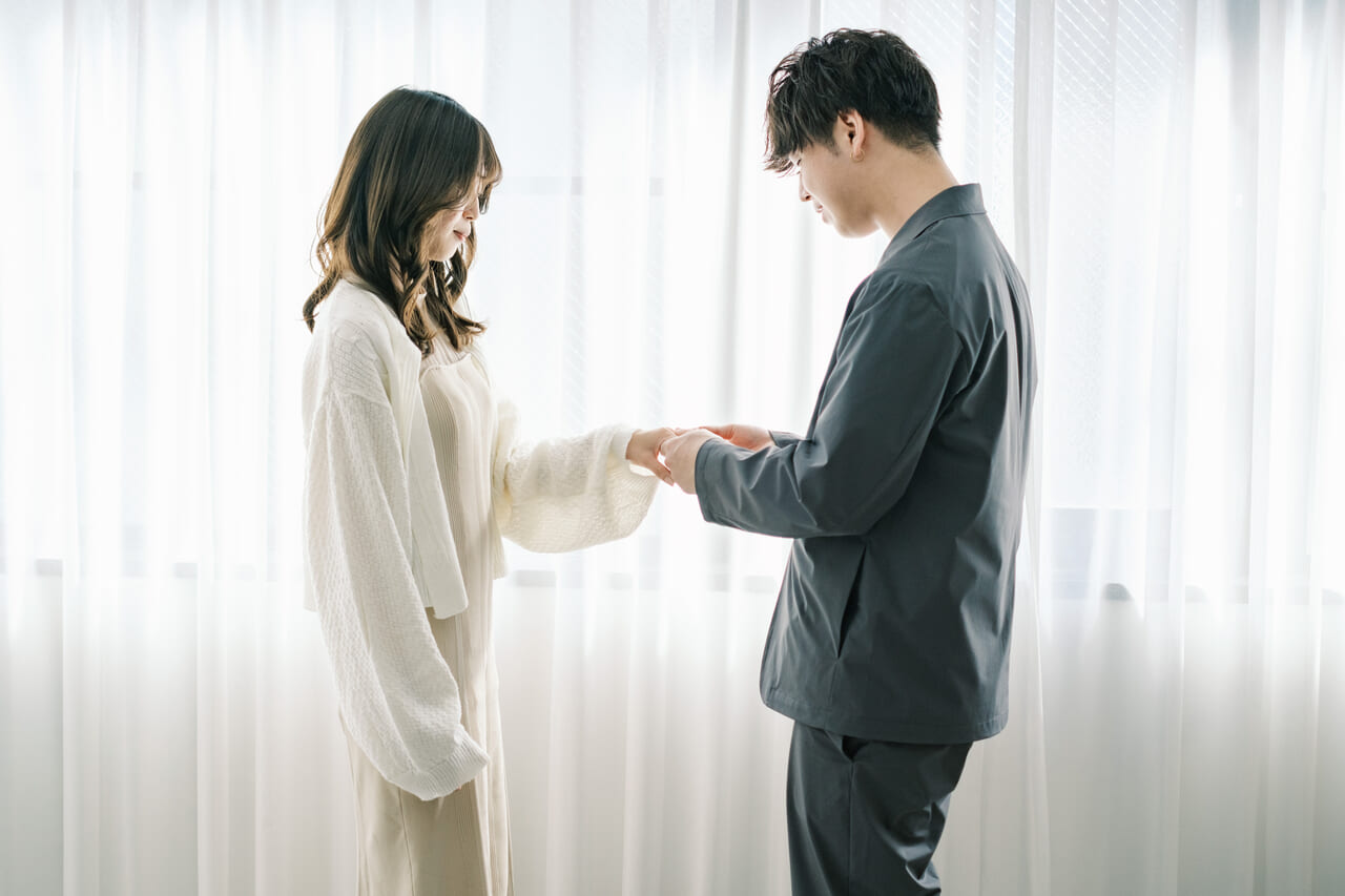 ふたりがジュエリーを贈り合う意味が込められたブライダルリング